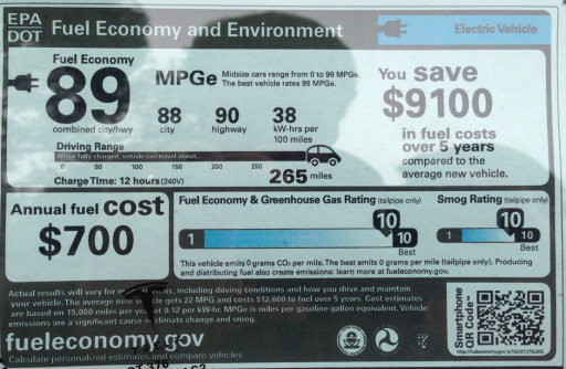 Good. This is the official US EPA sticker for the 2013 Nissan Leaf, in black and white.